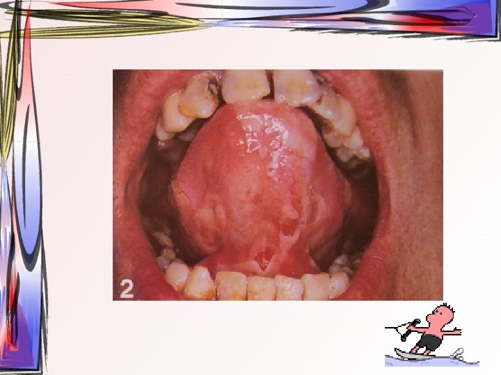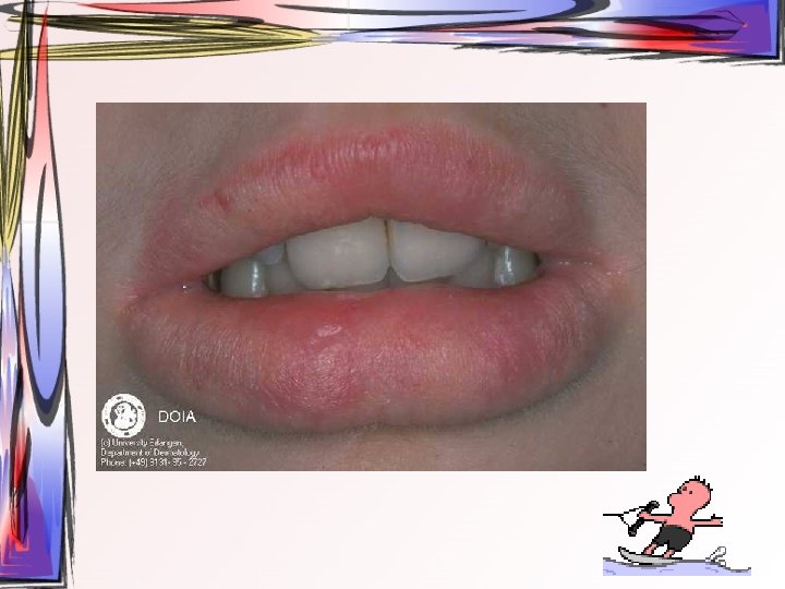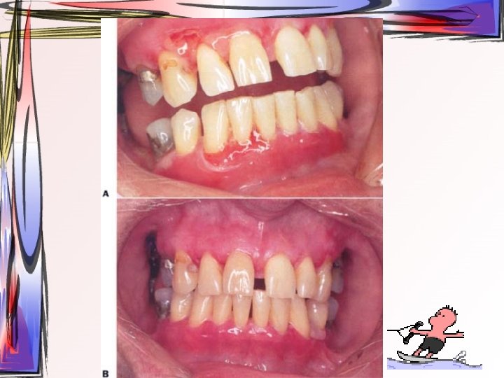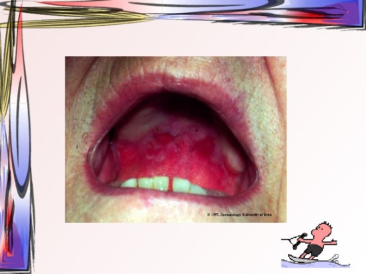 • Özellikle en çok etkilenen bölge olan yapışık dişeti – Sikatrisyel pemfigoid ile oral mukoza lezyonları ayırt edilemiyor • Yumuşak damakta, bukkal mukozada ve ağız tabanında da tutulum görülebilir.