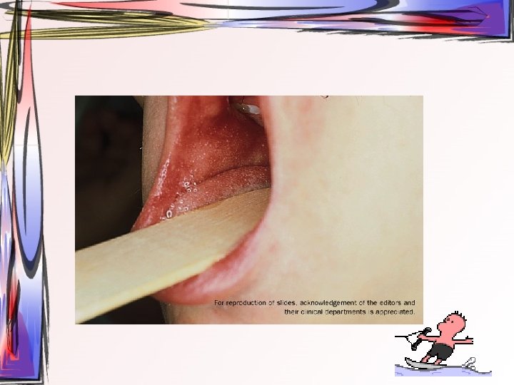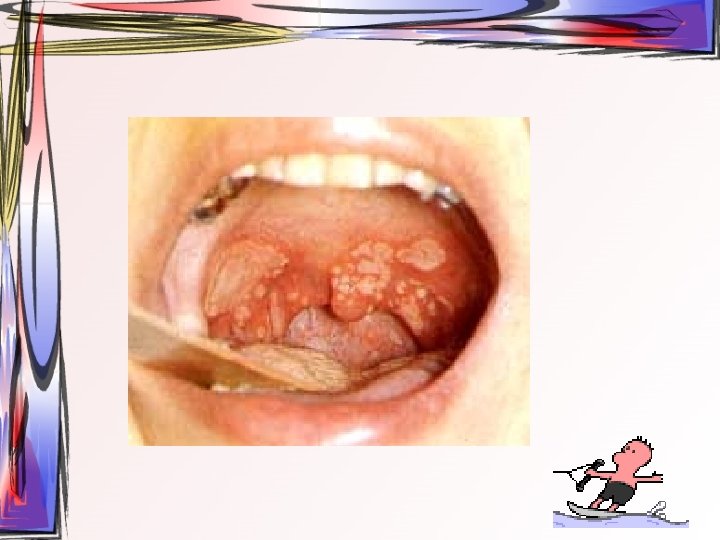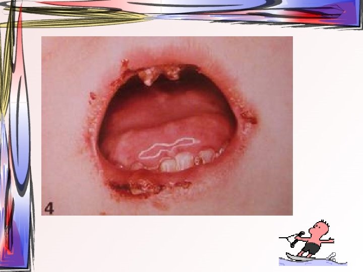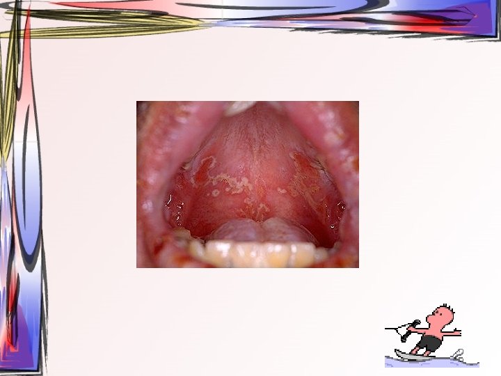 • Ayırıcı tanı – – Primer herpetik gingivostomatitis El ayak ağız hastalığı Varicella zoster Streptokokal farenjit • kendine bir haftadan daha kısa sürede iyileştiğinden dolayı tedaviye gerek yoktur – – – İstiharat Gerekli besin alımı Sıvı alımı Antipiretik Topikal analjezik