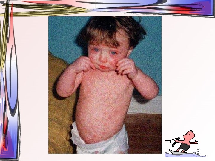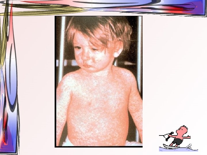 Su Çiçeği • Kontamine damlacıkların inspirasyonu • 5 -9 yaş arasında çocuklarda daha çok görülür. • Primer olarak gövde, baş ve boyunda görülen kızarıklıklara ateş, soğuk algınlığı, keyifsizlik ve baş ağrısı eşlik eder. Belirgin prodromal dönem yoktur.