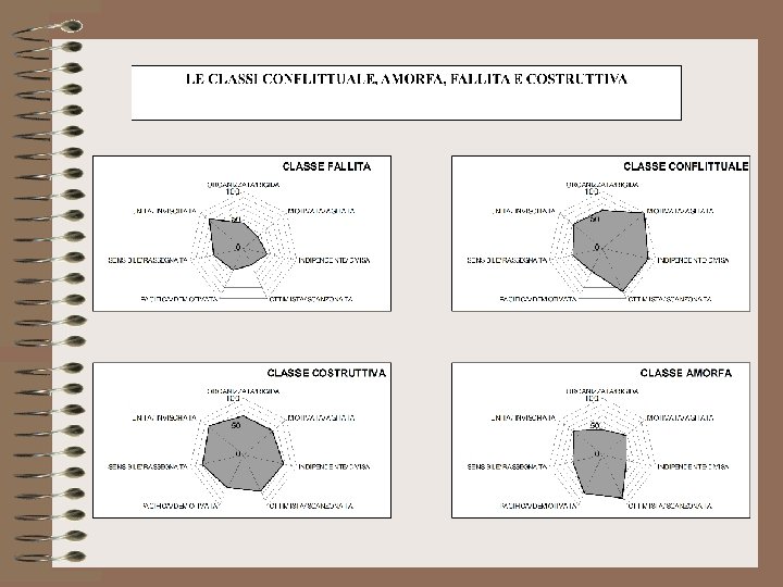 CLASSE FALLITA E' UNA CLASSE STATICA CON UN DEBOLE NUCLEO DI RELAZIONI SIGNIFICATIVE TRA GLI STUDENTI. SCARSA SOLIDARIETA' E PARTECIPAZIONE. GLI STUDENTI SONO CONSAPEVOLI DELLA SCARSA CAPACITA' DI FARE GRUPPO MA SONO DISINTERESSATI A RIMETTERE IN MOTO LA CLASSE. - IL NUMERO DELLE RELAZIONI E’ BASSO - SCARSA AUTOSTIMA ESPRESSIONI DI INDIVIDUALISMO COALIZIONI INTERNE CHE BLOCCANO LA CLASSE NON CI SONO STATE OCCASIONI DI ANIMAZIONE E DI INCONTRO RENDIMENTO MEDIO BASSO IL FALLIMENTO DERIVA § DA OPPRESSIONE (l'affiatamento interno è sfociato in qualche coalizione stabile con presenza di ideologie o atteggiamenti autoritari che la classe subisce) § O DA SPEGNIMENTO (la classe si è consumata in ripetuti tentativi di attivarsi costruttivamente e non è stata capita ed aiutata)