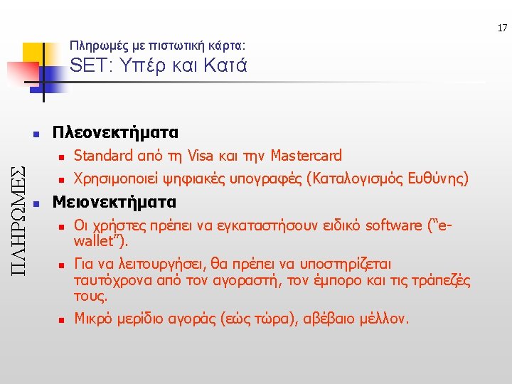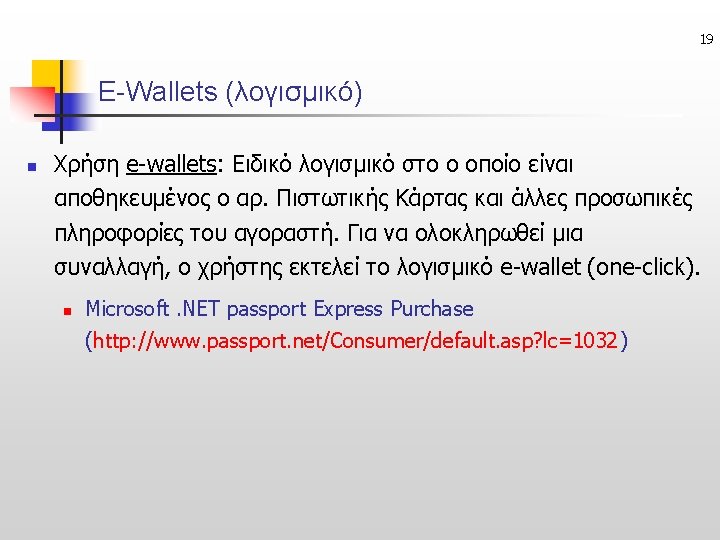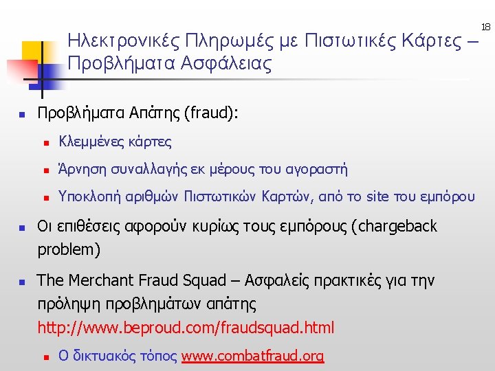 41 Links n www. eurobank. gr n n http: //egnatiasite. egnatiabank. gr/ n n Πληρωμές μέσω τράπεζας (online-banking) (Egnatias bank credit card payment system – Egnatia. Shop) http: //www. verisign. com/products/payment. html n Verisign Payment Pro full n www. combatfraud. org n http: //international. visa. com/ps/products/vcash/ n n (stored-value cards – micropayments) http: //global. mastercard. com/ourcards/smartcard/idemo 1. html n (smartcard demo –mastercard)