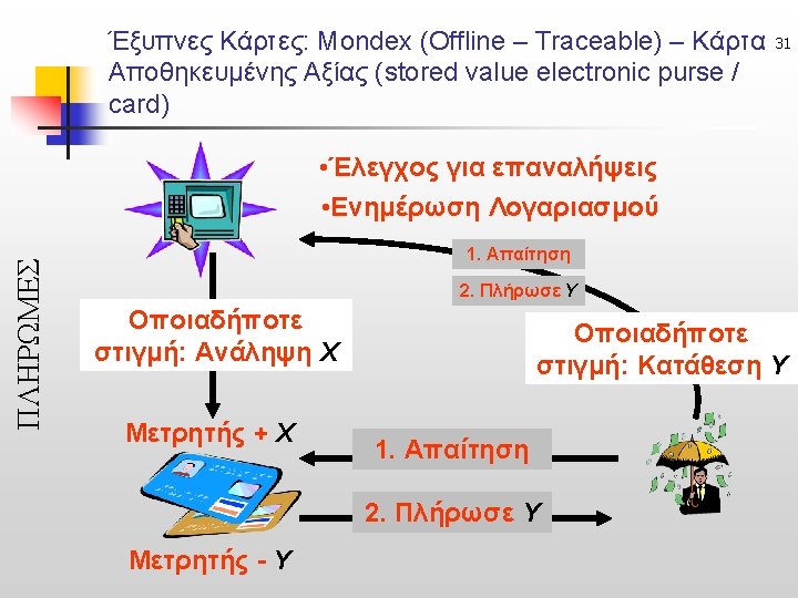 Αρχιτεκτονική Συναλλαγής με Έξυπνη Κάρτα μέσω Web - Γενικά Passcode Smartcard Card Reader PC WEB How Does It Work ? Web Server Firewall Application Server Firewall Data Sources Smartcard Authentication 30