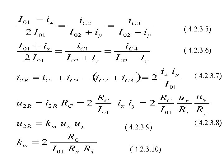 Podstawiając (4. 2. 1. 5) do (4. 2. 1. 6) otrzymujemy ( 4. 2. 1. 7) Jeśli | u. X | << 2φT ( 4. 2. 1. 8) ( 4. 2. 1. 9) Pierwszy człon równania (4. 2. 1. 9) wyraża wzmocnienie napięcia u. X, natomiast drugi – mnożenie u. X u. Y. Gdy u. X = 0 to i u 2 R = 0, natomiast gdy u. Y = 0 to w ogólnym przypadku u 2 R 0. Oznacza to, że wyjście układu mnożnika dwućwiartkowego jest zrównoważone względem sygnału u. X, a nie jest zrównoważone względem sygnału u. Y. .
