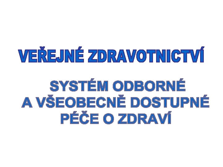 PÉČE O ZDRAVÍ • je široce pojatý souhrn zdravotnických, organizačních, ekonomických, výchovných a dalších prostředků, opatření a aktivit, jejichž smyslem je chránit, upevňovat, rozvíjet a navracet lidem zdraví. • její těžiště je v rodinách, školách na pracovištích.