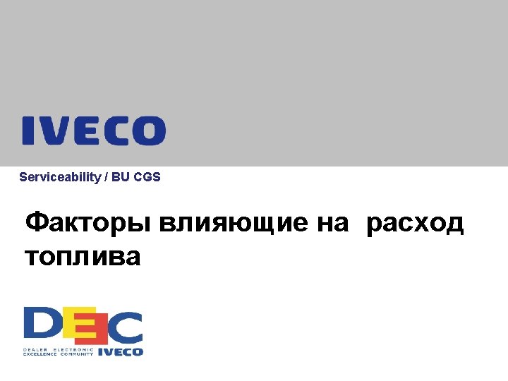 Количество остановок 6% 8% 11% 13% Машина: Stralis AT 440 S 54 T/P Полуприцеп: Высота 4 метра Ускорение от 0 до 80 Вес: 40 тон km/h около 0, 9 литра Serviceability / BU CGS Data classification: Internal 12/26/2021 11: 01 AM 14 DEEC Project 3%