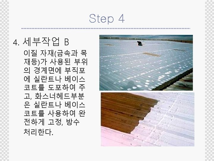Roof Mate(루프메이트) 주요실적 3 ± ± ± Wells Fargo Bank YMCA Heritage High School National Gypsum Company Cancer Research Center K Mart Maui Kamaole Resort Pearl Kai Shopping Center Sugar Beach Hotel Excell Foods Ford Production Plant