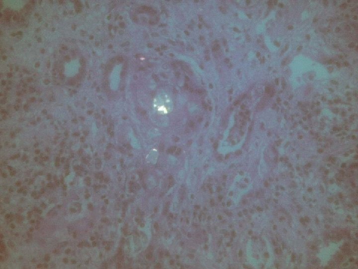 • Combined liver/kidney transplant June 21, 2003 with initial serum creatinine of 80 µmol/L. • First post transplant biopsy done when creatinine rose to 120 µmol/L