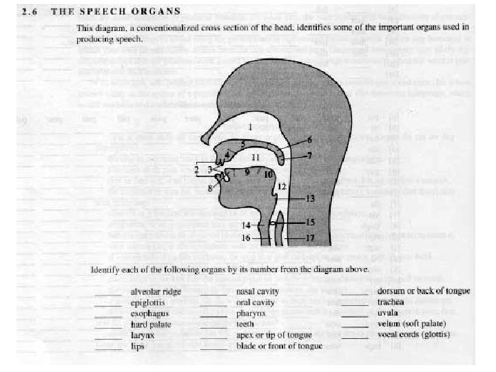 Making Vowels n Tongue Position n Relative to roof of mouth n n Position of highest part n n High, mid, low Front, central, back Chart – Page 27