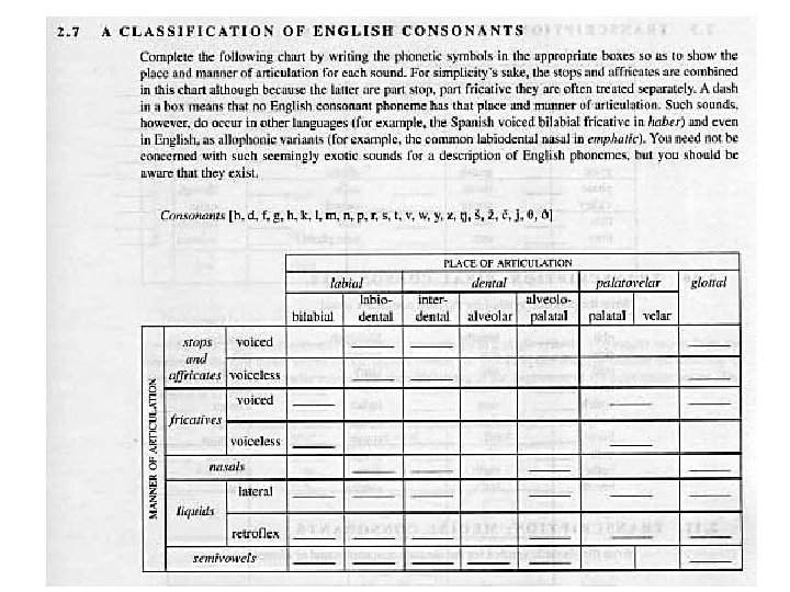 Making Consonants n Place of articulation n Where you make a sound n n Illustration page 23 Manner of articulation n How you make a sound n Chart page 25