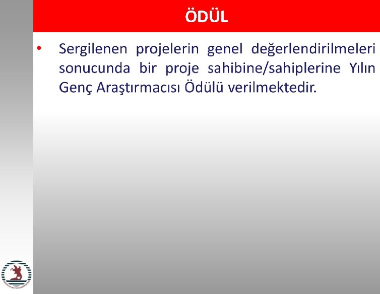 ÖDÜL • • Uluslararası proje yarışmalarında derece alan öğrenciler üniversite sınavına girecekleri yıl ÖSYS kılavuzunda belirtilen tarih ve şekilde TÜBİTAK’a ek katsayı başvurusunda bulunurlar. Ayrıca Uluslararası Proje Yarışmalarına TÜBİTAK tarafından gönderilerek Birincilik, İkincilik, Üçüncülük ödüllerinden birini alan öğrenciler TÜBİTAK 2205 - Yurt İçi Lisans Burs Programından yararlandırılacaktır.