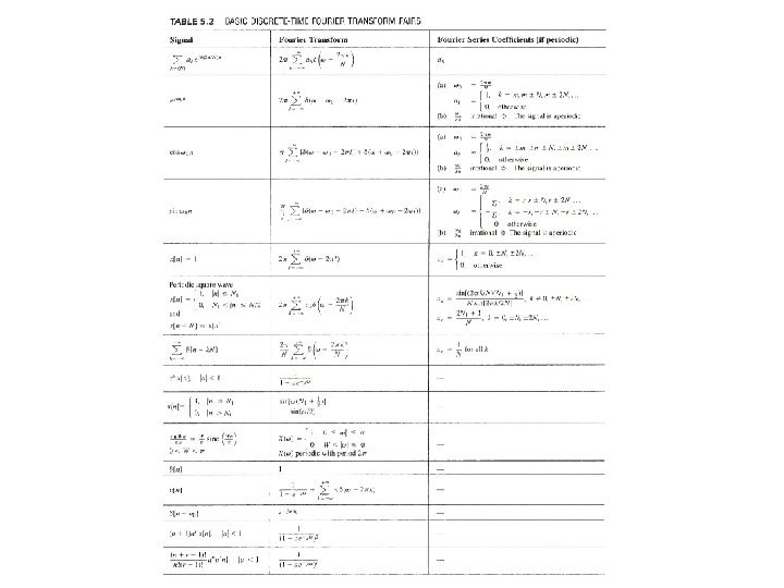 From Periodic to Aperiodic l Convergence Issue given x[n] – No convergence issue since the integration is over an finite interval – No Gibbs phenomenon See Fig. 5. 7, p. 368 of text