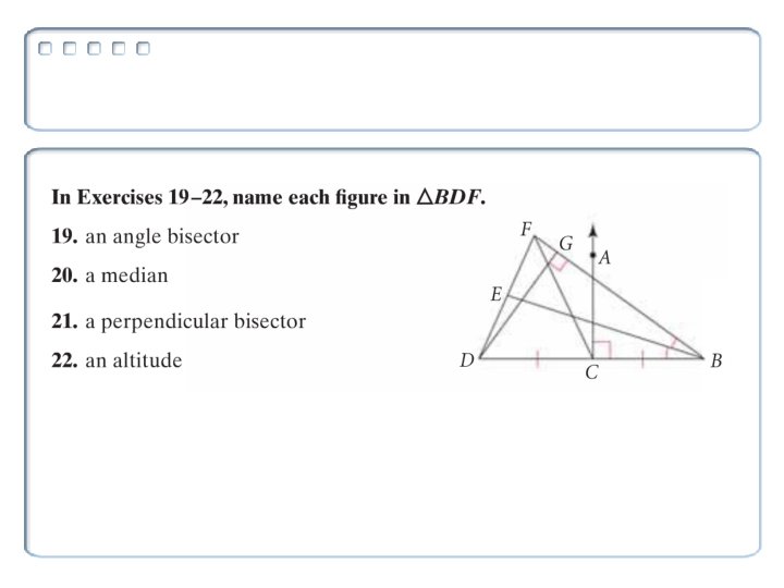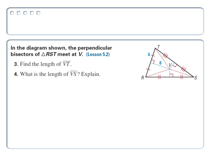 5. 2: Special Segments Objectives: 1. To use and define perpendicular bisectors, angle bisectors, 2. To discover, use, and prove various theorems about perpendicular bisectors and angle bisectors