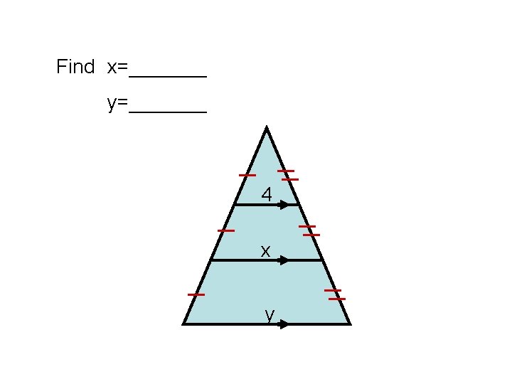 A R B S C T 1. If RS=12 then ST=_______ 2. If AB=8 then BC=____ 3. If AC=20 then AB=_______ 4. If AC=10 x then BC=______