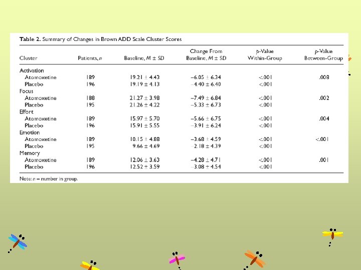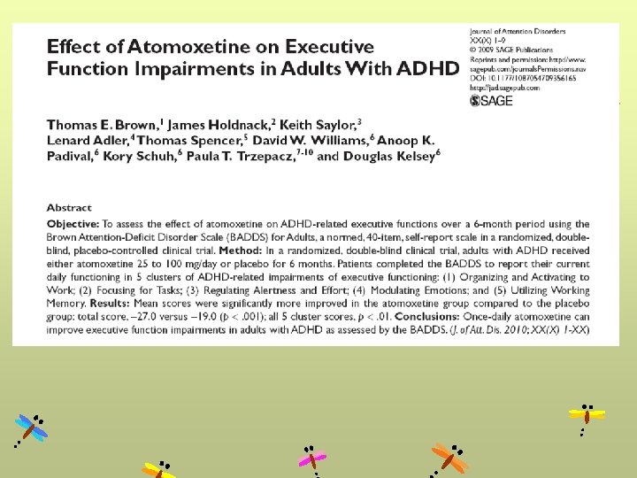 Conclusion • Methylphenidate and atomoxetine were associated with improvement in a variety of neuropsychological functions in ADHD.