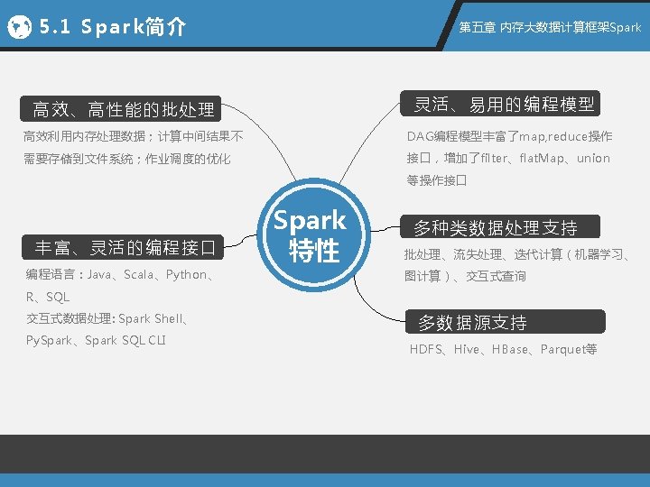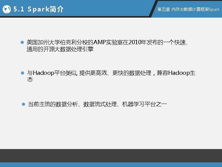 5 3 Spark Spark l Spark spark app Slides: 36 Download presentation 5. 3 Spark配置 第五章 内存大数据计算框架Spark l 常用Spark属性 属性名 默认值 含义 spark. app. name (none) Spark应用程序的名称 spark. driver. cores 1 集群模式下driver所使用的core的数量 spark. driver. memory 1 G Driver进程所使用的内存大小 spark. executor. memory 1 G 每个executor进程所使用的内存大小 spark. master (none) 集群管理器URL spark. submit. deploy. Mode (none) Driver程序的部署模式,取值为: ”client”或”cluster” 5. 3 Spark配置 第五章 内存大数据计算框架Spark l 常用环境变量配置 配置项 含义 SPARK_LOCAL_IP 绑定的IP地址 SPARK_PUBLIC_DNS Driver程序使用的DNS服务器 SPARK_CLASSPATH 额外追加的classpath