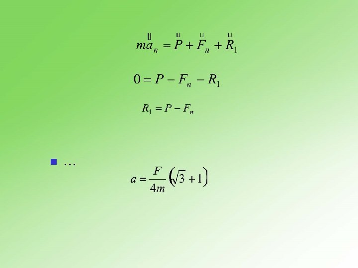 Primeri n 5. 9. 1 Telo mase m = 400 kg leži na horizontalnoj podlozi. Na telo deluje u horizontalnom pravcu sila intenziteta F = 294 N. Koliko je ubrzanje tela? Koeficijent trenja između tela i podloge iznosi = 0. 1. 22