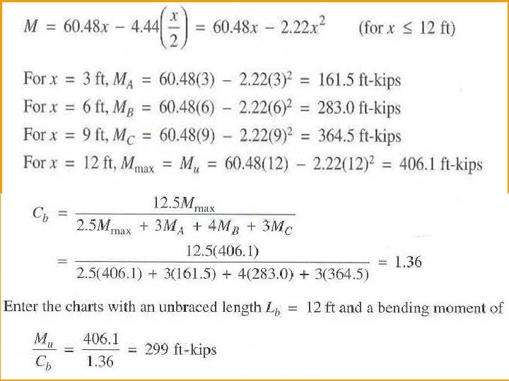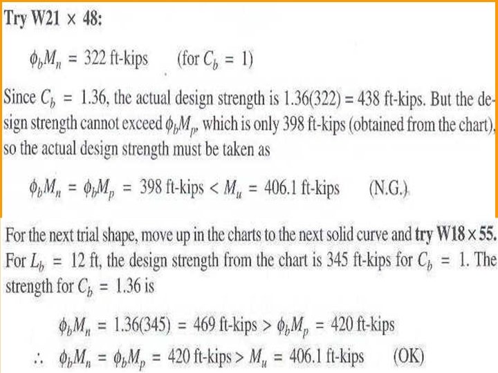 u Beam Design Charts: – Many graphs, charts, and tables are available for the practicing engineer, and these aids can greatly simplify the design process. – To determine the efficiency, they are used in design offices. – You should approach their use with caution and not allow basic principles to become obscured. – The curves of design moment versus un braced length given in Part 5 of the Manual. – All curves were generated with Fy =50 ksi and Cb = 1. 0. – For other values of Cb simply multiply the design moment from the chart by Cb.