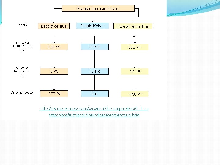 . Para evitar errores de apreciación subjetiva se han desarrollado los termómetros. El termómetro más habitual es el termómetro de mercurio. Está formado por un tubo estrecho de vidrio que contiene mecurio en su interior. Por convenio se toman dos puntos fijos que se hacen conrresponder al punto de fusión del hielo y la ebullición del agua. Hay tres escalas termométricas principales: Celsius, Kelvin y Fahrenheit