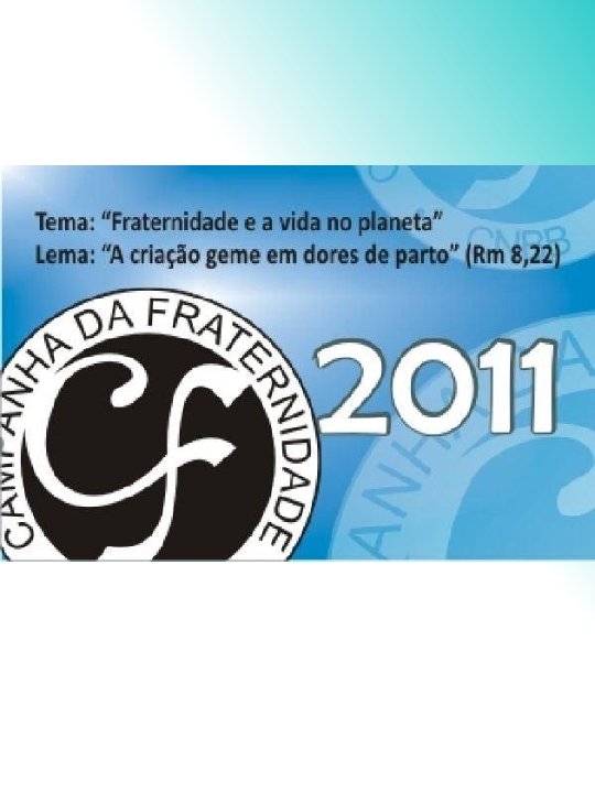Hino da C. F 2011 Olha, meu povo, este planeta terra: Das criaturas todas, a mais linda! Eu a plasmei com todo amor materno, Pra ser um berço de aconchego e vida. (Gn 1)