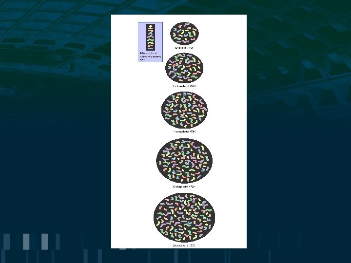 Polyploidy • Polyploidy = genome composed of multiple complete sets of chromosomes; occurs in plants • Haploid = set of unpaired chromosomes found in gametes • Diploid = set of paired homologous chromosomes found in most cells; total number is fixed for a species