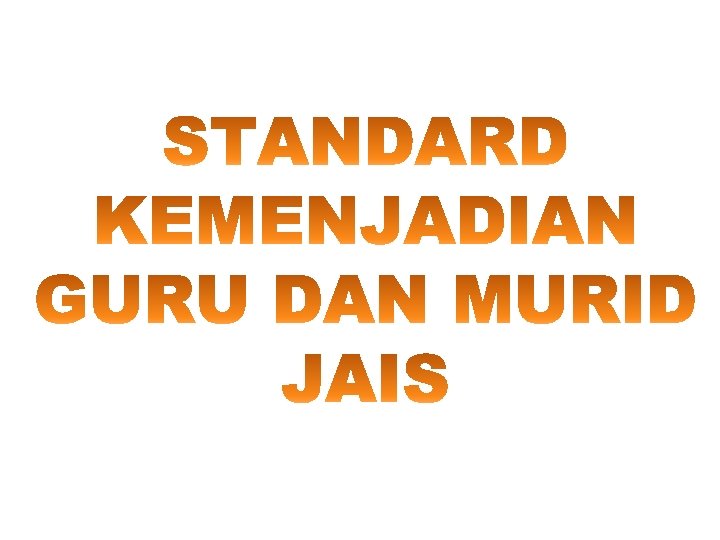AL QURAN & AS SUNNAH STANDARD KEMENJADIAN GURU 1. 2. 3. 4. 5. MUDARRIS MU’ALLIM MURABBI MUADDIB MURSYID STANDARD KEMENJADIAN MURID 1. 2. 3. 4. SIDDIQ AMANAH TABLIGH FATANAH HARUS 1. ILMU 2. IMAN 3. AMAL (ISLAM & IHSAN) 4. AKHLAQ MULIA 5. BERKETRAMPILAN 6. TAQWA 7. MAJU & MAMPU BERSAING