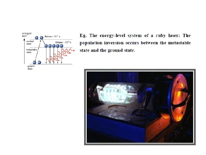 Laser Longitudinal Mode Optical resonance: where λ: wavelength of the resonating frequency, L: length of the cavity, m : an integral Eg. laser diode : cavity length = 300 m; Al. Ga. As : gap wavelength 800 nm How many wavelength will fit into the cavity ?