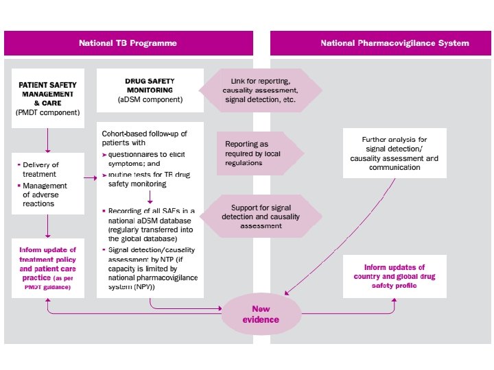 Global a. DSM database • A global a. DSM database was created in July 2016 • It will be coordinated by the Special Programme for Research and Training in Tropical Diseases at WHO Headquarters (TDR) and the WHO/GTB • Physically housed in Luxembourg Institute of Health (LIH), which will be responsible for its day-to-day management • Countries can report SAEs and other AEs to the database, and the reporting may come from patients treated with medicines which are new or repurposed for an indication on TB. (more details in modules 11 iv and 11 vi in this series)