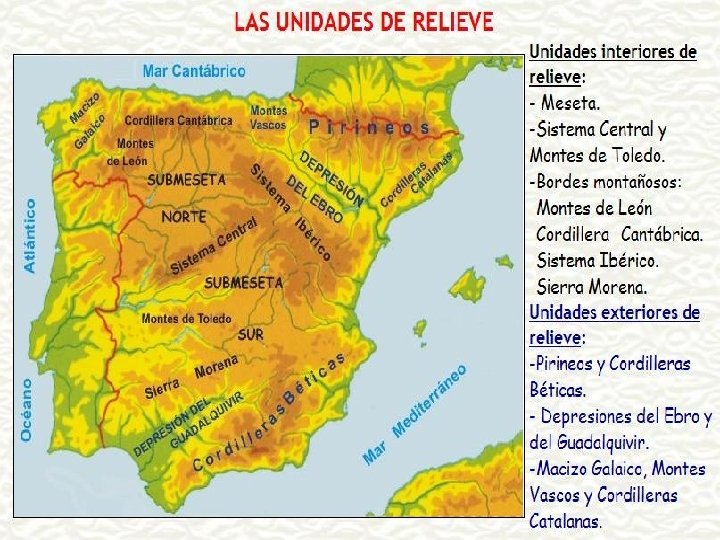 CONOCIMIENTOS PREVIOS � ¿Dónde está la meseta central? � ¿Cuál es el pico más alto de España? � ¿Qué mar baña a valencia? ¿Y a Galicia? ¿Y a Cádiz? � ¿Qué río es el más caudaloso de España? ¿Y el que más kilómetros recorre? � ¿Qué tiene de especial el Rio Guadalquivir? � ¿Dónde están las islas Canarias? � ¿Dónde está la costa Cantábrica?