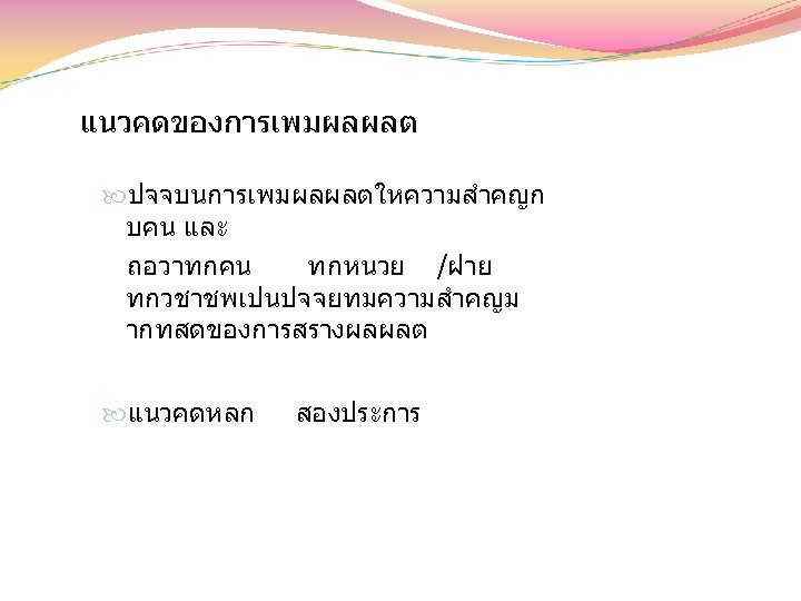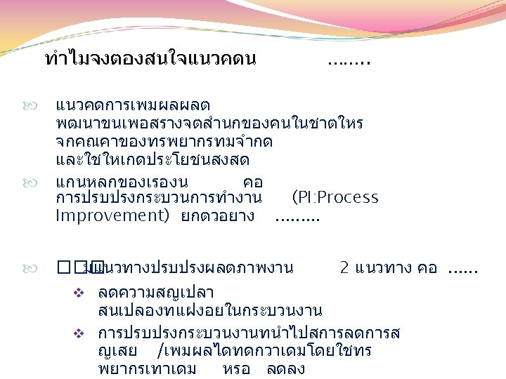 5 มตของการวด Productivity Work Standard Ratios: Objectives: Productivity index Overall indexes: Cost Ratios: Time Standard Ratios: �. �������