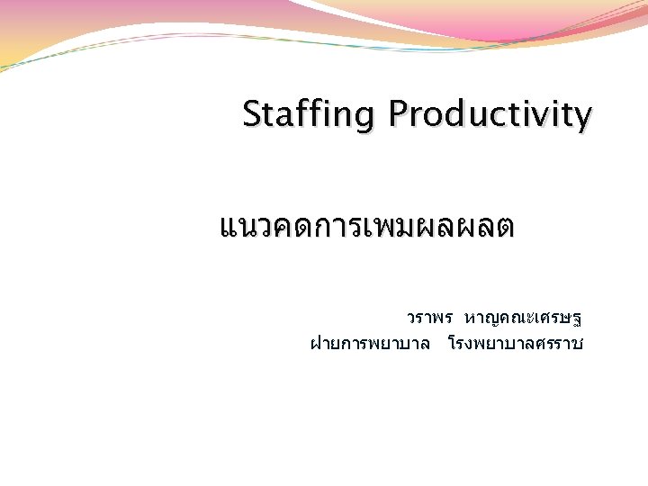 Staffing and Productivity Goals to understand some of the key terms in workload management Know the relationship between staffing and scheduling Understand the meaning of productivity in health care organizations Develop and describe commonly used productivity ratios