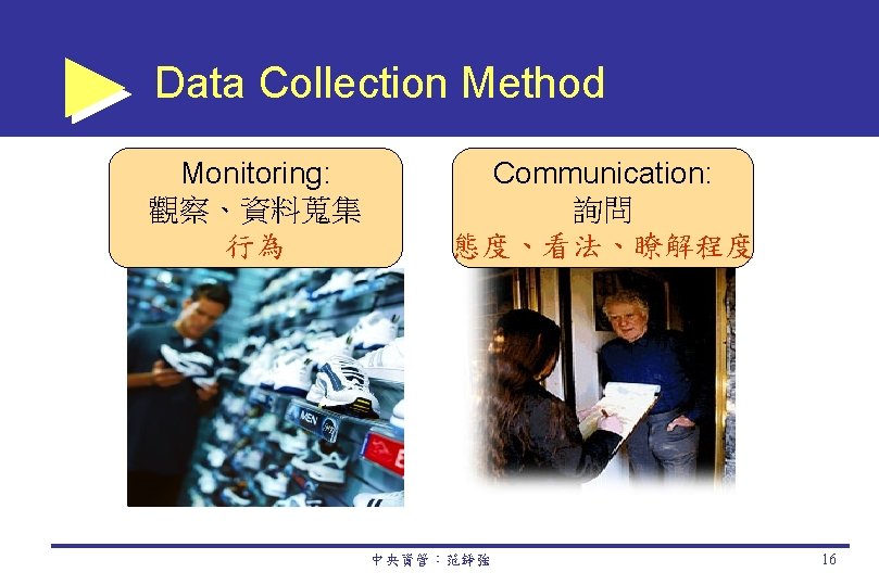 Approaches for Exploratory Investigations Participant observation Film, photographs Projective techniques Psychological testing Case studies Ethnography 民俗誌 Expert interviews Document analysis Proxemics and Kinesics 肢體 語言學 中央資管:范錚強 10