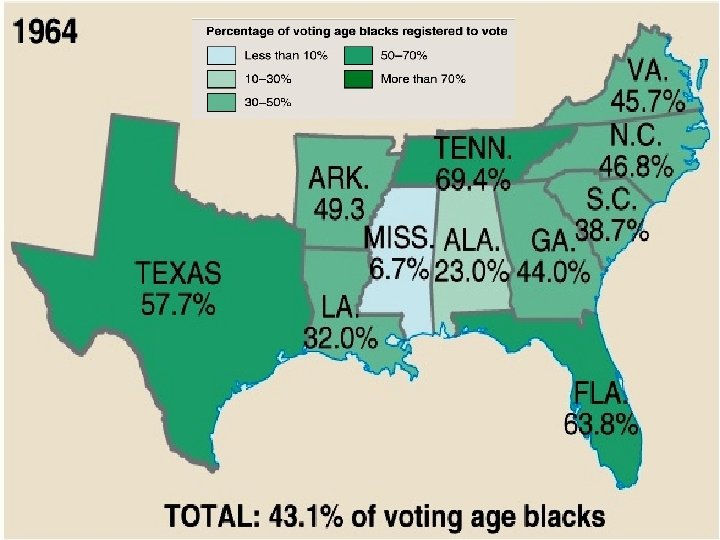 social reality Supreme Court decision which legalized segregation throughout the nation. • “Separate but Equal” as long as public facilities were equal • Problem: Black facilities would never be equal to White facilities • Our nation would be segregated until the 1960’s.