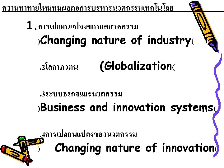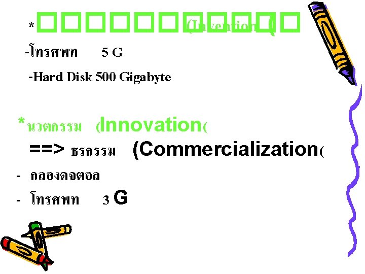 บทท 5 การบรหารนวตกรรมเทคโนโลย (Technology Innovation) *เทคโนโลย (Technology) Tangible + Intangible Service Ex. DTAC GAME ONLINE STOCK ONLINE
