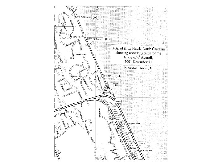 2001 Dec. 21 Grazing Occultation of 4. 0 -mag. 2 Aqr • Moon 32%+, Cusp Angle 12 S • Observed from 8 stations at Kitty Hawk, North Carolina, by only 4 observers. Kitty Hawk has many summer homes, unoccupied on a December weekday, so we had many safe places to set up telescopes 1 to 2 hours before the graze. • 4 of the video stations were unattended • Also observed from 6 stations in Georgia