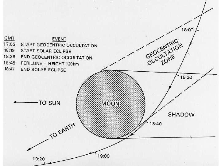 1962 April 10 th expedition to Concord, Calif. , for a graze of 5. 1 -mag. 64 Orionis by the 33% sunlit Moon ___ This promised to be a good event, so I computed the path well in advance, and worked with Jack Borde, leader of the Walnut Creek Moonwatch Team, to time the graze from 4 locations across my predicted limit line (I had no lunar profile predictions then). But the prediction was wrong and we all had an 8 -min. occultation, with the R at the n. cusp occuring at my predicted time. I discussed my calculations with Prof. Cunningham and he pointed out that I needed to take into account the motion of the observer. This made the calculations harder (needed to iterate) but now accurate enough to locate in the real graze zone.