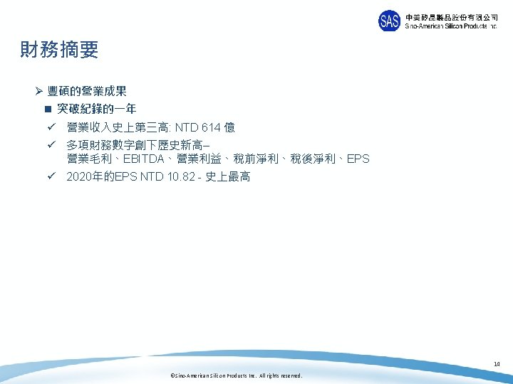 中美矽晶營運報告 13 ©Sino-American Silicon Products Inc. All rights reserved.