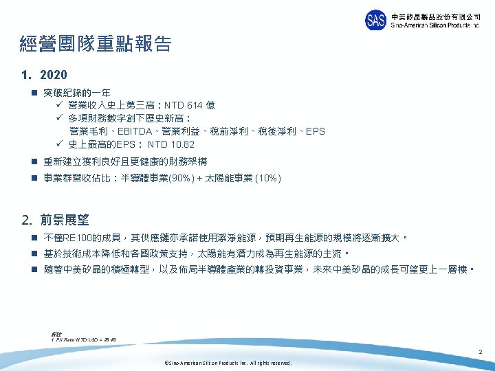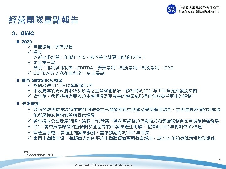 中美矽晶 (5483 TT) 2020年營運報告 2021年 3月 ©Sino-American Silicon Products Inc. All rights reserved.