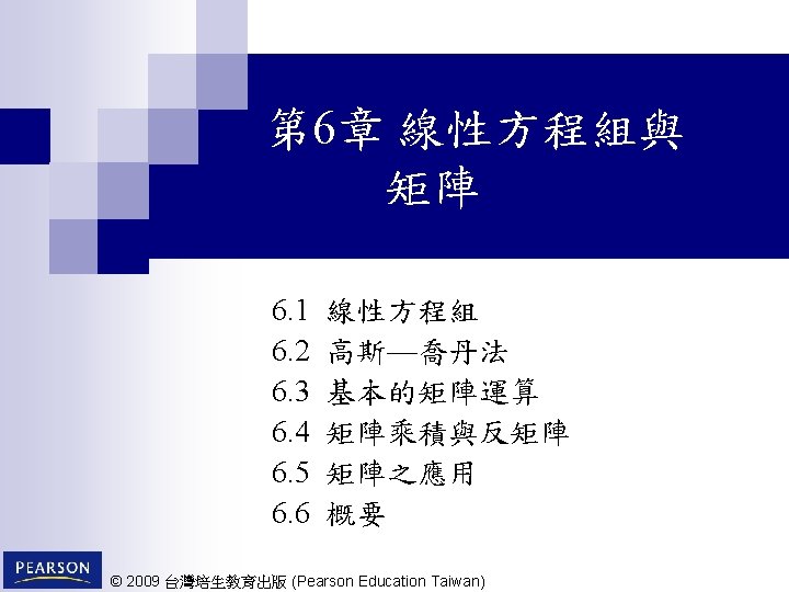 6. 1 線性方程組 © 2009 台灣培生教育出版 (Pearson Education Taiwan) 6 -2