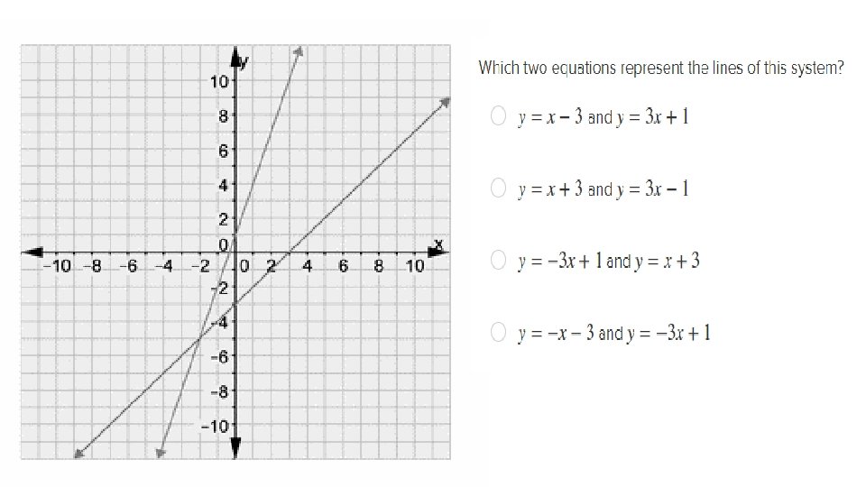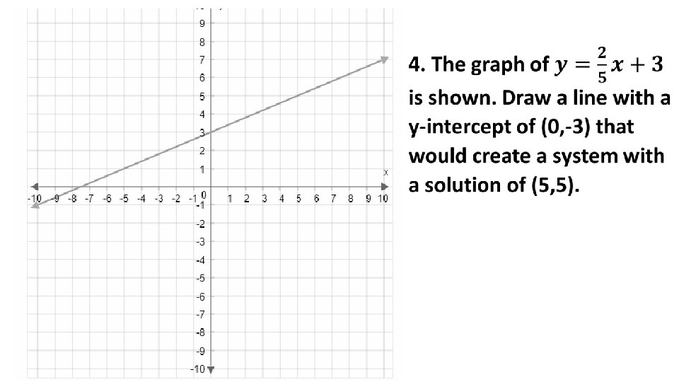 1. Write the equation of line 1: 2. Write the equation of line 2: 2 1 3. Write the solution to the system of equations: