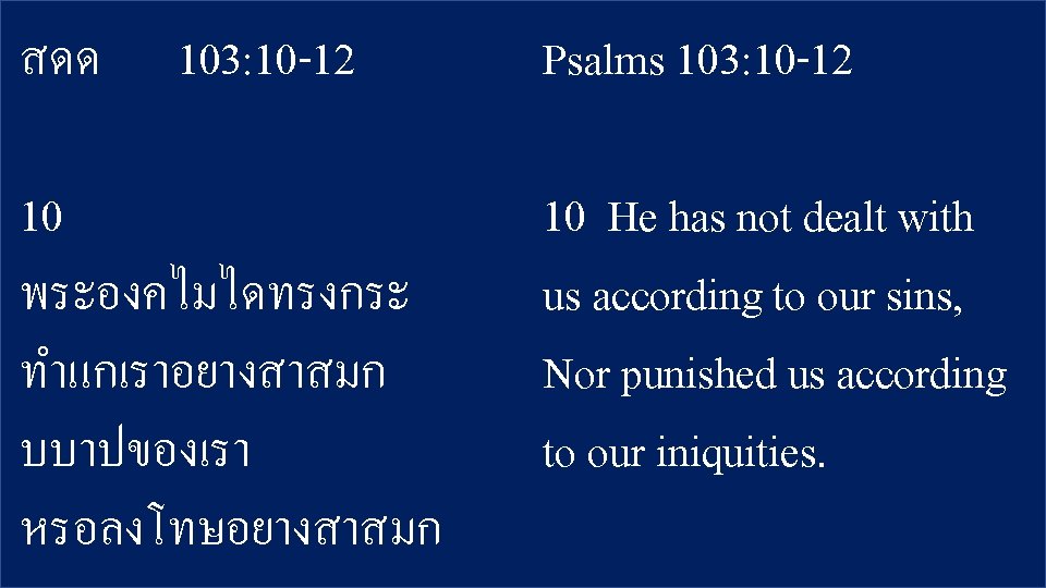 สดด 103: 1 -5 4 ผทรงไถชวตของท านจากแดนผตาย และทรงเชดชทานดว ยความรกมนคงและคว Psalms 103: 1 -5 4 Who redeems your life from destruction, Who crowns you with lovingkindness and tender mercies,