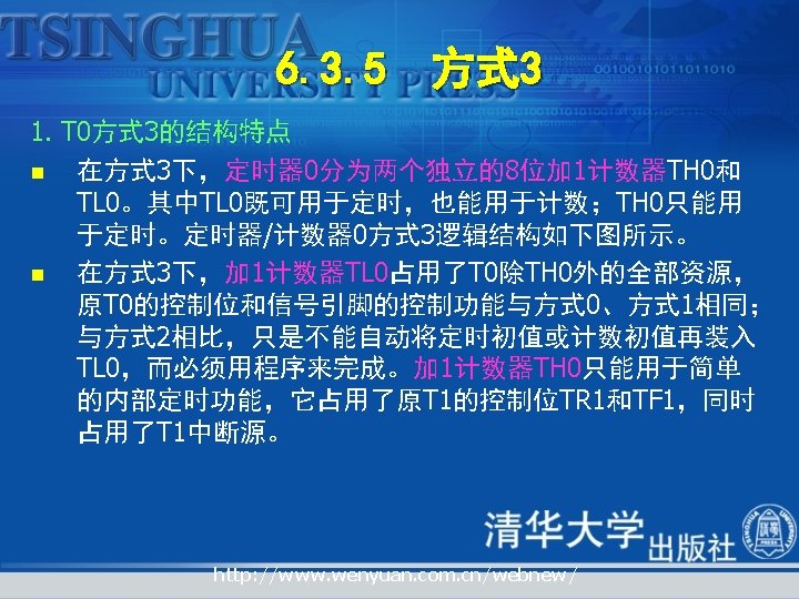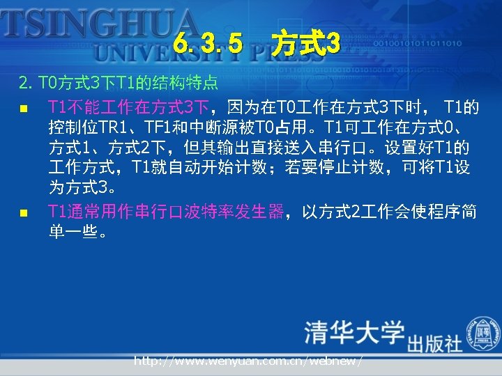 C/T 6. 3. 5 方式 3 C/T 定时 器/ 计数 器 0 方式 3下 的T 1 逻辑 结构 C/T C/T http: //www. wenyuan. com. cn/webnew/