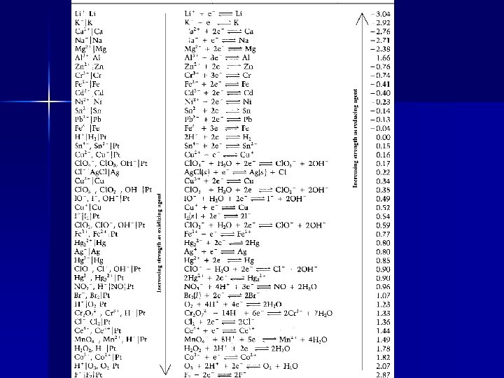 6 -3. 3 Applications of Standard Electrode Potentials ● Strength of Oxidizing or Reducing Agents The more positive φ°is, the stronger the oxidizing agent. The more negative φ°is, the stronger the reducing agent.