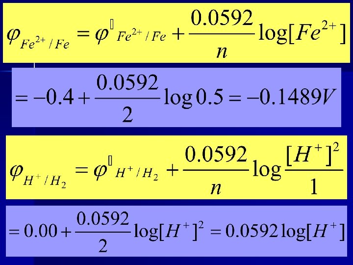![E= φ+-φ-= 0. 0592 log[H+]-(-0. 4189) = 0. 389 V [H+]=0. 3125 mol/L E= φ+-φ-= 0. 0592 log[H+]-(-0. 4189) = 0. 389 V [H+]=0. 3125 mol/L](https://slidetodoc.com/presentation_image/464b25d950fc24be7e64a833e726c4db/image-54.jpg)