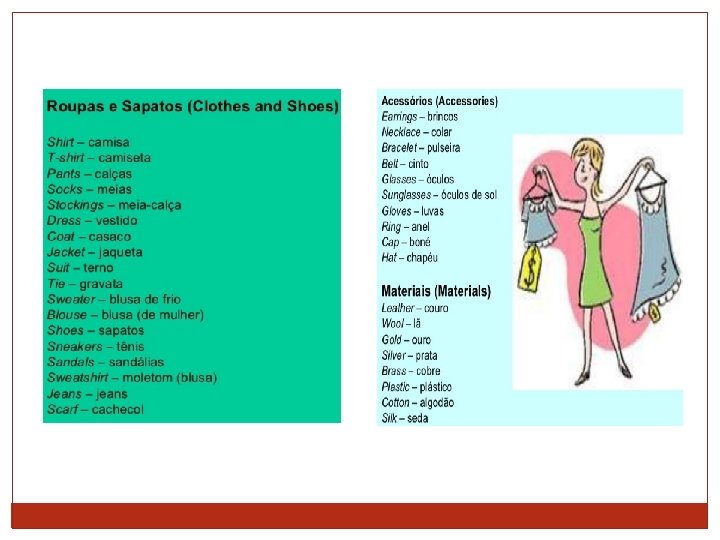 http: //pirlimpimpimpoa. com. br/2017/07/14/aulas-de-ingles-clothes https: //www. teachersthinkingtogether. com/infantil https: //pt. slideshare. net/Robert. Wilson 2/what-are-you-wearing-19016596 https: //pt. slideshare. net/fabiantogi/giving-personalinformation/15 https: //www. slideshare. net/walzanuncio/vocabulrio-roupas https: //www. englishexperts. com. br/forum/lista-de-roupas-e-acessorios-em-ingles-comtraducao-t 6428. html https: //brasilescola. uol. com. br/ingles/clothes-and-accessories. htm https: //www. skill. com. br/noticias/ingles/como-falar-sobre-as-pecas-de-roupa-eacessorios-em-ingles https: //blog. openenglish. com/pt-br/tipos-de-roupas-em-ingles/ https: //bogglesworldesl. com/clothes_worksheets. htm