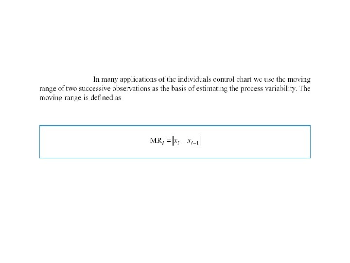 • Rules for interpreting Xm. R charts • For X portion : apply WECO four rules • For m. R portion apply rule 1 only.