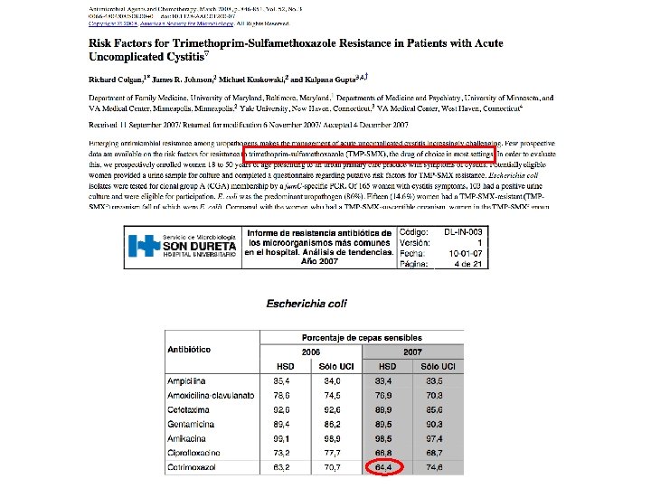 Conveniencia l Microbiología Flora local “So empirically we now must choose an anti-MRSA antibiotic for complicated skin structure infections. Here it is very important as well to achieve adequate tissue concentrations”. Sensibilidad y resistencias locales La misma vancomicina pero distinto MRSA