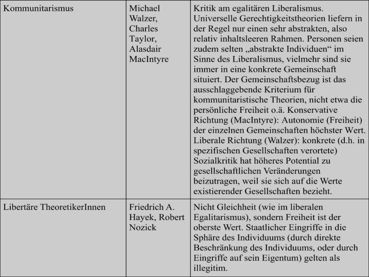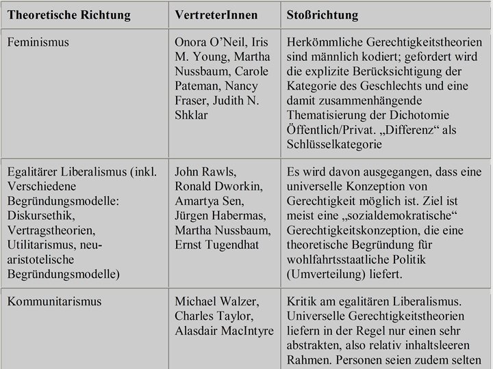 Diskussion Martha Nussbaum • Grundbedürfnisansatz • „Dicke vage Theorie des Guten“ • Ist Martha Nussbaums Ansatz ein brauchbarer Gegenpol „zu rein“ interessensbasierter Politik? • Wer ist der Adressat des Textes? • Wem dient die Begründung?