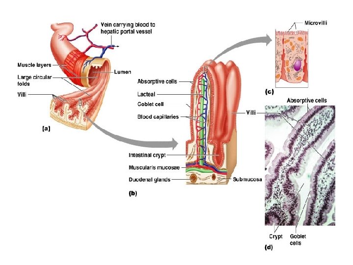 Smáþarmar • • • Smáþarmarnir eru í raun mun lengri en ristillinn en hafa mun minna þvermál – Smáþarmarnir eru um 3 m í lengd á meðan ristillinn er um 1. 5 m – Hinvegar er þvermál smáþarma um 2. 5 cm en 6. 5 cm hjá ristli Eftir smáþörmunum þverum eru fellingar Innan á þörmunum er slímhúðin felld í ótal totur, þarmatotur (um 1, 5 mm á lengd). Á milli þeirra eru þarmakirtlarnir Auk þess eru frumurnar alsettar örtotum. Allt þetta eykur yfirborð smáþarmanna (um 250 -300 fm 2) og þar með frásog.