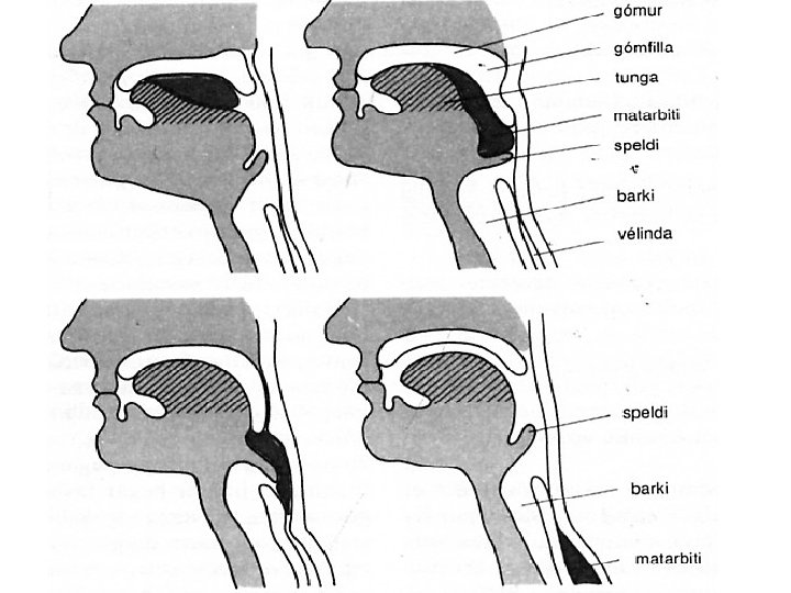 Kok • Kok: • Kokið er svæðið sem tekur við fæðunni frá munninum (og loftinu frá nefholinu). • Kynging á sér stað í kokinu – Er röð taugaviðbragða – Ósjálfráðar bylgju-hreyfingar sem flytur fæðuna niður í vélinda – Speldi lokar barkanum.