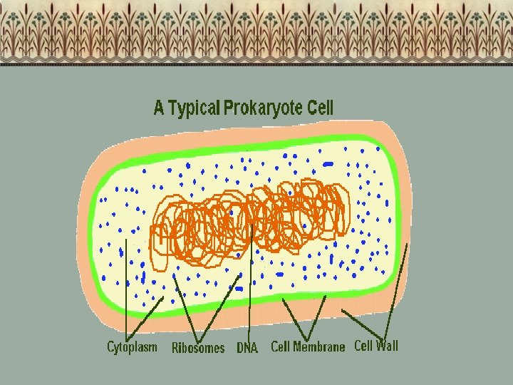 Prokaryotes – Typical Bacteria Basic Structure • DNA – strands floating in cytoplasm/small rings called plasmids • Ribosomes- RNA/protein synthesis sites • Cytoplasm-water based • Cell membrane & Wall